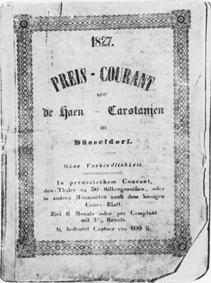 Zum hundertsten Firmenjubiläum 1927 wird in der Festschrift ein Preis-Courant 1827 erscheinen, das dem Preis-Courant 1842 täuschend ähnlich sieht. Der Hersteller dieses Surrogates ist nicht bekannt. Das Motiv für Adolf Siegert könnte darin bestanden haben, Jubiläen parallel zu den Neuwieder Vettern von Siegert & Cie. zu feiern (Gründung 1777).Die einzige Tochter von Wilhelm und Elisabeth Jacobine de Haen, Mathilde, heiratet den Düsseldorfer Maler Friedrich August Siegert, einen Enkel von Johann Gottfried Siegert aus Neuwied. Diese Heirat verbindet die beiden Kaufmannsfamilien Siegert und de Haen miteinander. Der Maler Friedrich August Siegert ist Schüler des Künstlers Wilhelm von Schadow und wird 1873, zur Blütezeit der „Düsseldorfer Schule“, Professor für Genre-Malerei an der Kunstakademie Düsseldorf. Das Ehepaar hat vier Kinder. Einer der Söhne, Adolf Siegert (1858-1931), wird später das Familienunternehmen dHCS leiten.