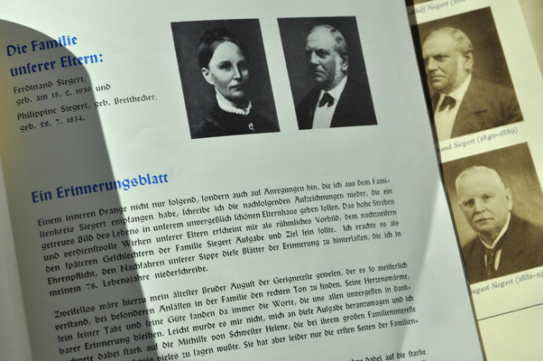 Die Frau von Christian Gotthilf Siegert wird früh zur Witwe: Ihr Mann stirbt bereits mit 49 Jahren. Der älteste Sohn August beendet gerade seine akademische Ausbildung an der Düsseldorfer Kunstakademie, die beiden Söhne, Ferdinand und Heinrich, sind gerade mal 15 und 18 Jahre alt. Zu jung, um das erfolgreiche Geschäft zu führen! Also nimmt Sophie Maria Siegert die Geschicke selbst in die Hand. Sie führt das Unternehmen Johann Gottfried Siegert & Sohn von 1840 bis 1852. Ihre Enkelin Marie, die zur Chronistin der Familiengeschichte wird, beschreibt sie als „das verehrte Haupt der Familie“: angstfrei, voller Tatendrang, dabei so bescheiden, dass es ihrem Sohn Ferdinand fast unheimlich ist. Er musste sie durchaus ermuntern, auch mal an sich selbst zu denken.